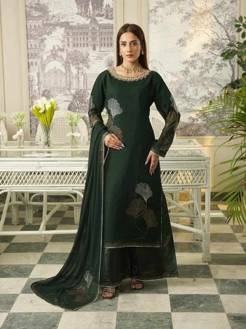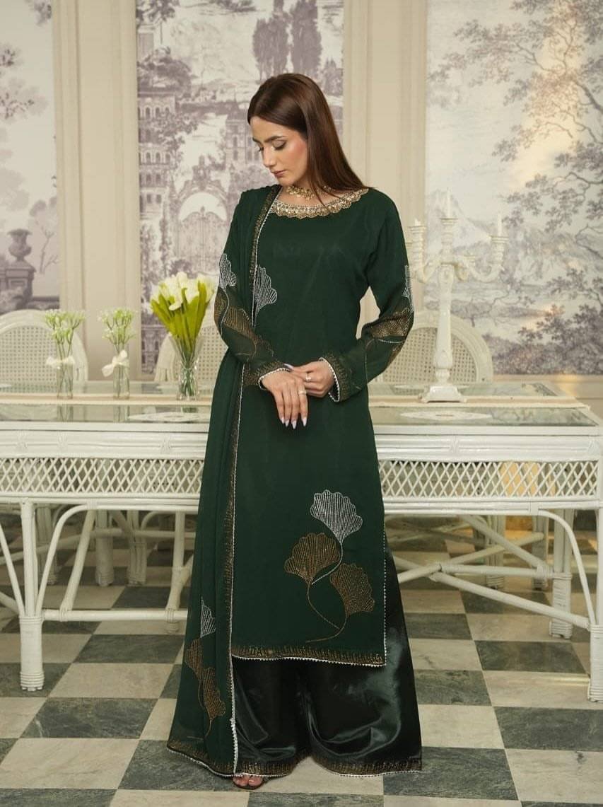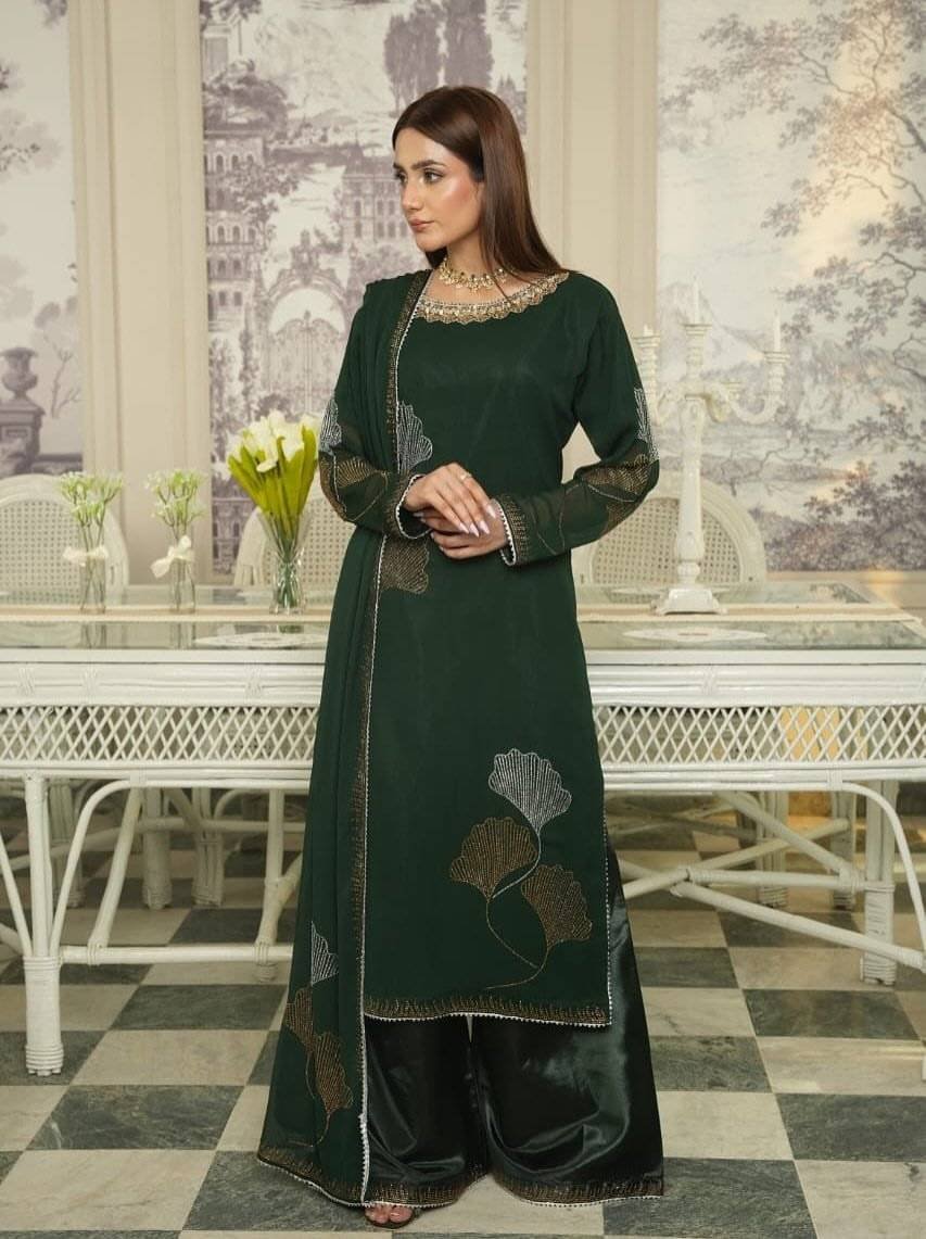 Be the first to review “Bottle green Chiffon Iron stone Partywear” Cancel reply