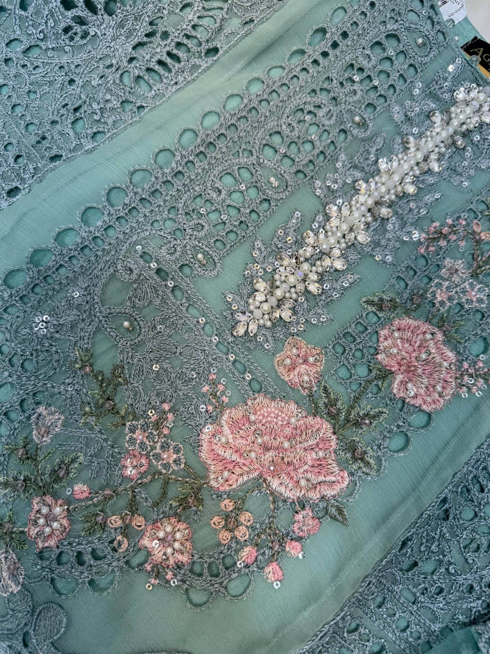 – Chiffon fabric long shirt with intricate hand embellishment and stone work